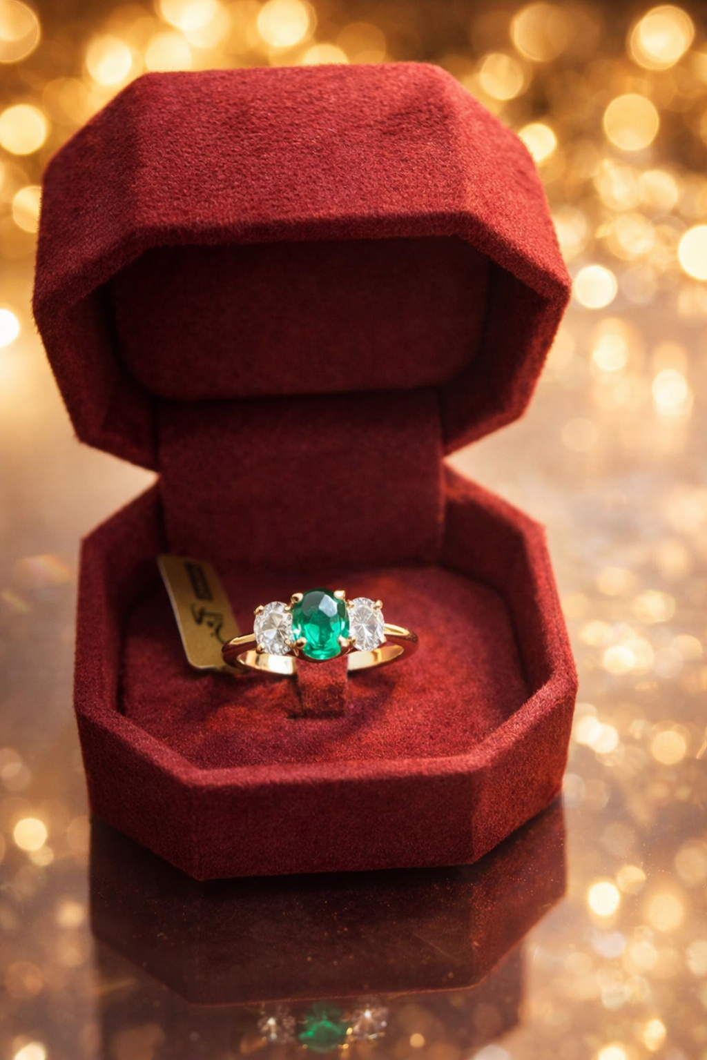 انگشتر نگین دار طلا سفید طرح زمرد
